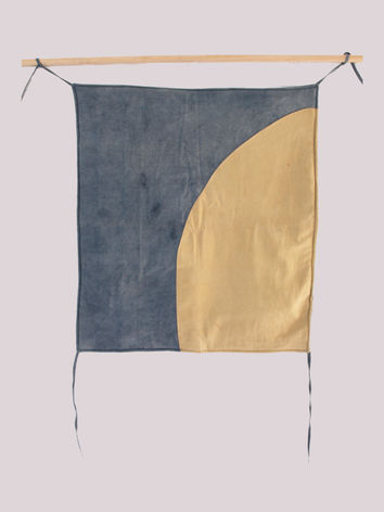 Con base a la propuesta conceptual de Careri sobre la primera acción estética (la acción simbólica de a travesar un territorio), encontré como resignificar el trabajo de teñido natural en algodón (practica que realicé en el seminario virtual con Carlos Cipriano), que posteriormente converti en las banderas Noren, su motivo ornamental paso a encarnar la fotografia de Tina Modotti “Mujer con Bandera”, entrecruzando las disciplinas y constestando a la pregunta de cómo volver a habitar corporalmente el paisaje en un escenario post -pandemia, inspirándome a realizar esta acción. Comprendiendo que la vida surge desde la contemplación (en este caso el proceso de realizar las banderas) pero también desde la acción (activarlas); Al caminar con la bandera, encontré la manera de expresar que este periodo fue determinante para la construcción de una nueva realidad e identidad. La exploración con tintes naturales la realicé con el Mtro. Carlos Ciapriano durante la maestría en la Universidad Autonoma de México.